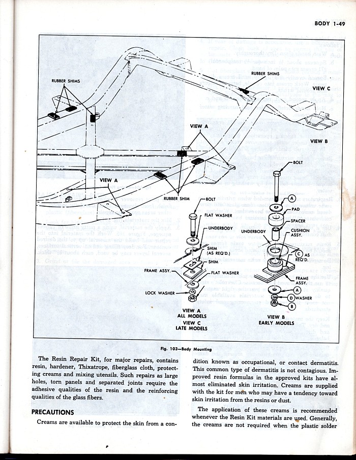 After all of these years, it's no surprise that the steering box needs rebuilding. It will probably need a bearing set, and perhaps new gears. Removing the steering column is a difficult job, indeed. Some owners have given up and removed the body from the chassis. Besides providing easy access to the steering box and column, there are many other items that can be easily reached at the same time, including body repairs and body mount repairs.