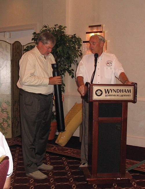 chairman Brad Bean with an award for an outstanding job.