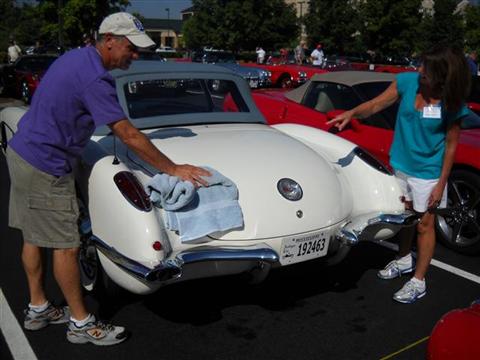 and Brenda Gristina put the finishing touches on the white '59 fuelie they have