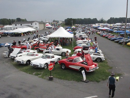 was Corvettes around the circle drive at the Carlisle Country Club for