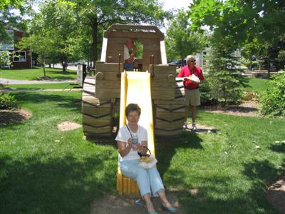 Partridge proves that you can't keep the kids off the playground equipment.